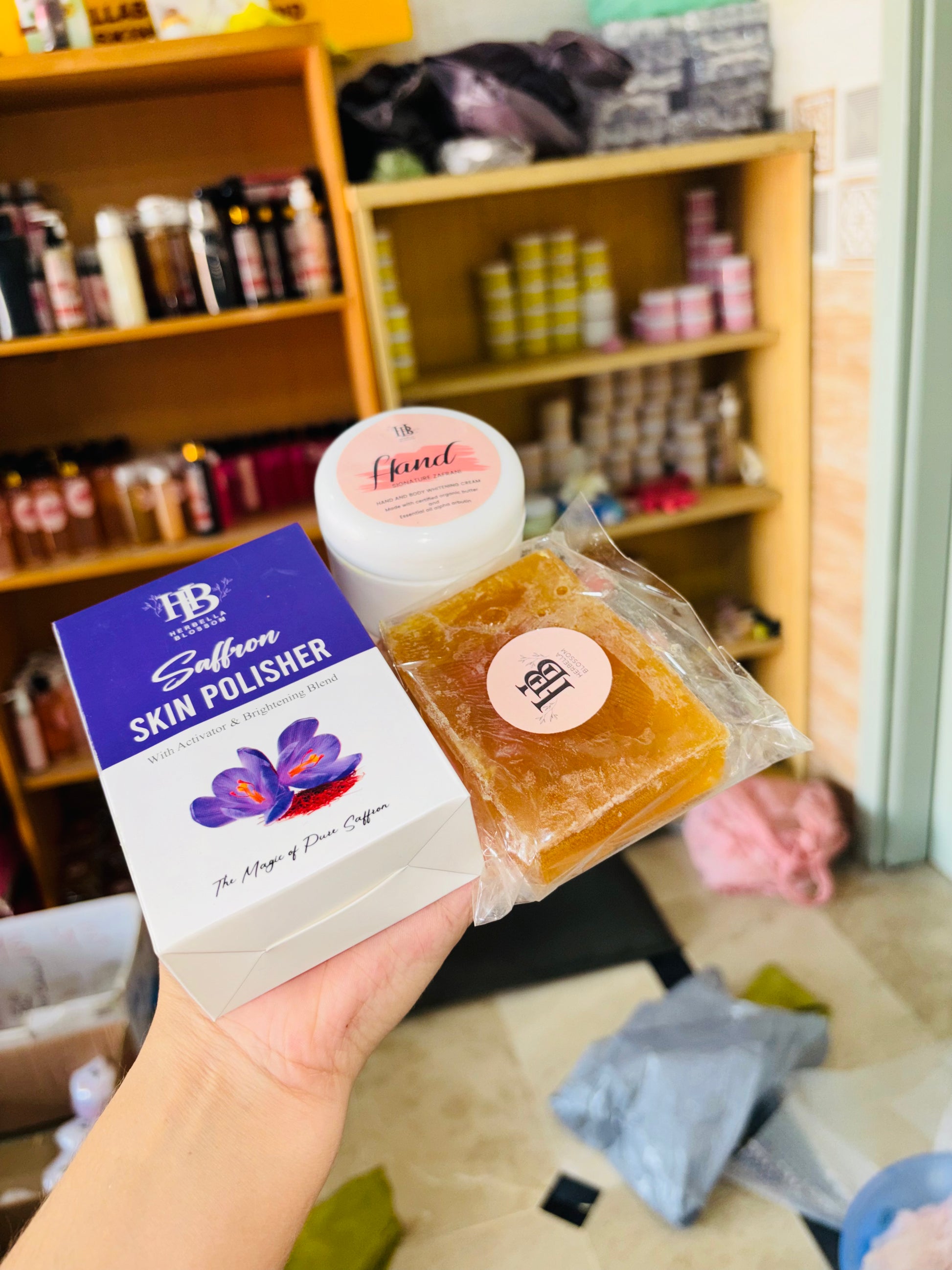 - Saffron Soap Bar: Infused with real saffron extracts, it deeply cleanses and hydrates, giving your skin a radiant golden glow.